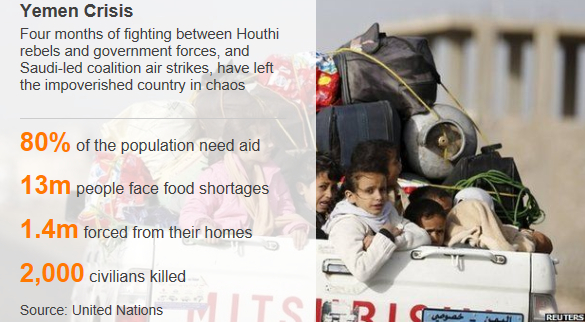 Yemen's conflict has left it on the brink of famine, the UN's World Food Programme (WFP) has warned. Food shortages, lack of fresh water, and low fuel stocks have created a "perfect storm" for the Yemeni people, the WFP's Ertharin Cousin said.